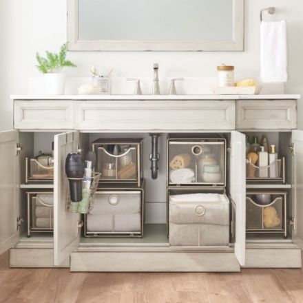 Price and stock could change after publish date, and we may make money from these links. Having a cabinet door and an enclosed space for storage in these key rooms is a blessing and a curse. I love this crzdeal stackable under sink cabinet organizer great for a bathroom as well. Shop bathroom cabinet & under sink storage at the container store. Wow, clean up your kitchen under cabinet and get rid of that ocd problem, literally kept me up at night.